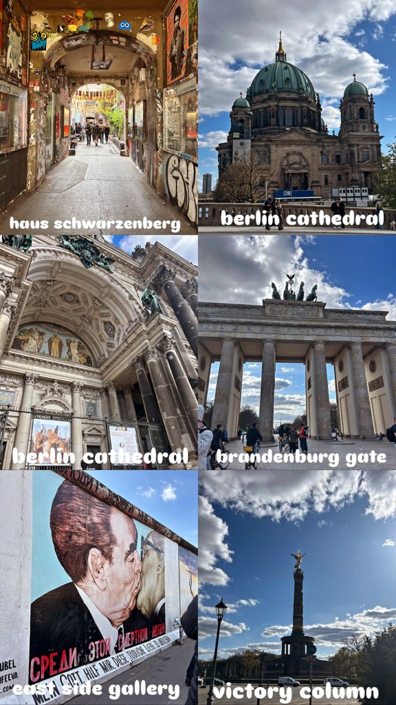 We made sure to see most things, including the Cathedral, Brandenburg gate and the Victory Column. We also walked down a street called Haus Schwarzenberg which is full of graffiti and art work.